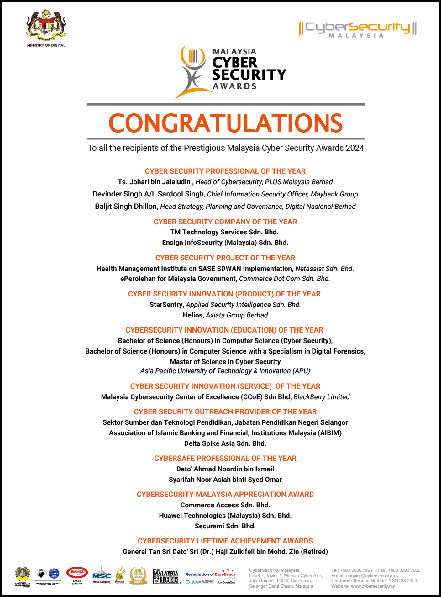CyberSecurity Malaysia will once again host the Malaysia Cyber Security Awards alongside CyberDSA 2025, after successfully presenting 10 awards in the previous edition. This event underscores the critical role that excellence in cyber security plays in today’s digital landscape. It aims to recognise and celebrate those who have made remarkable contributions to the field, highlighting their achievements and innovations.