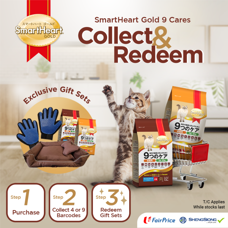 Tier 1: Collect 4 barcodes >A pair of Grooming gloves and a bag of Smartheart Gold Cat 9 Cares 1.2 kg.